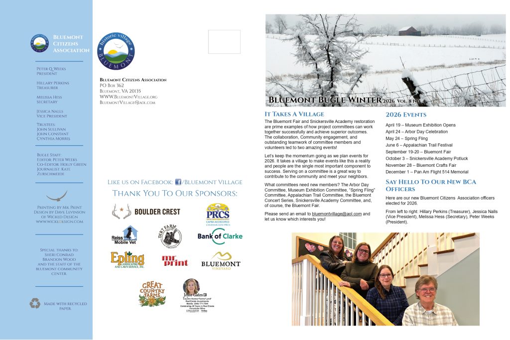 Bluemont Bugle The Bluemont Bugle is our community newsletter, published quarterly. Below are past issues. Click on the image to enlarge. Winter 2026Fall 2025Summer 2025Spring 2025Winter 2025Fall 2024Summer 2024Spring 2024Winter 2024Fall 2023Summer 2023Spring 2023Winter 2023Summer 2022Winter 2022Fall 2021Summer 2021Spring 2021Winter 2020Summer 2020Spring 2020